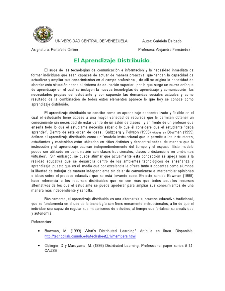 • Bowman, M. (1999) What’s Distributed Learning? Artículo en línea. Disponible: