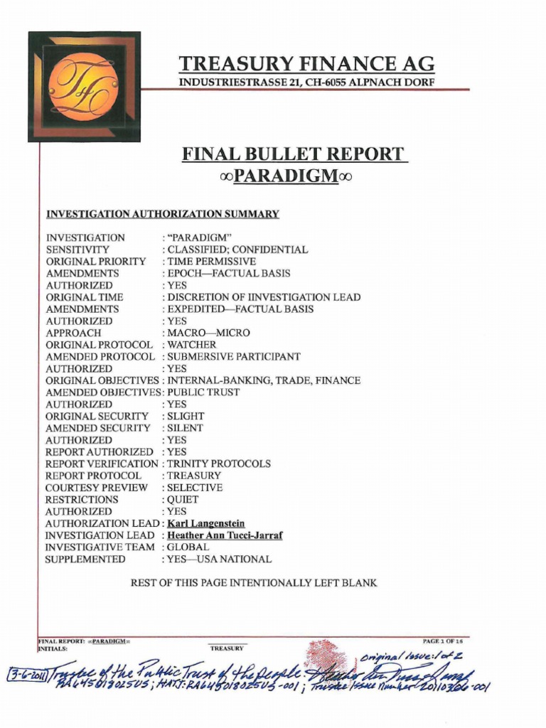 public trustees HAVE PRODUCED AND PROVIDED their REPORT. INVESTIGATION LEAD HAS