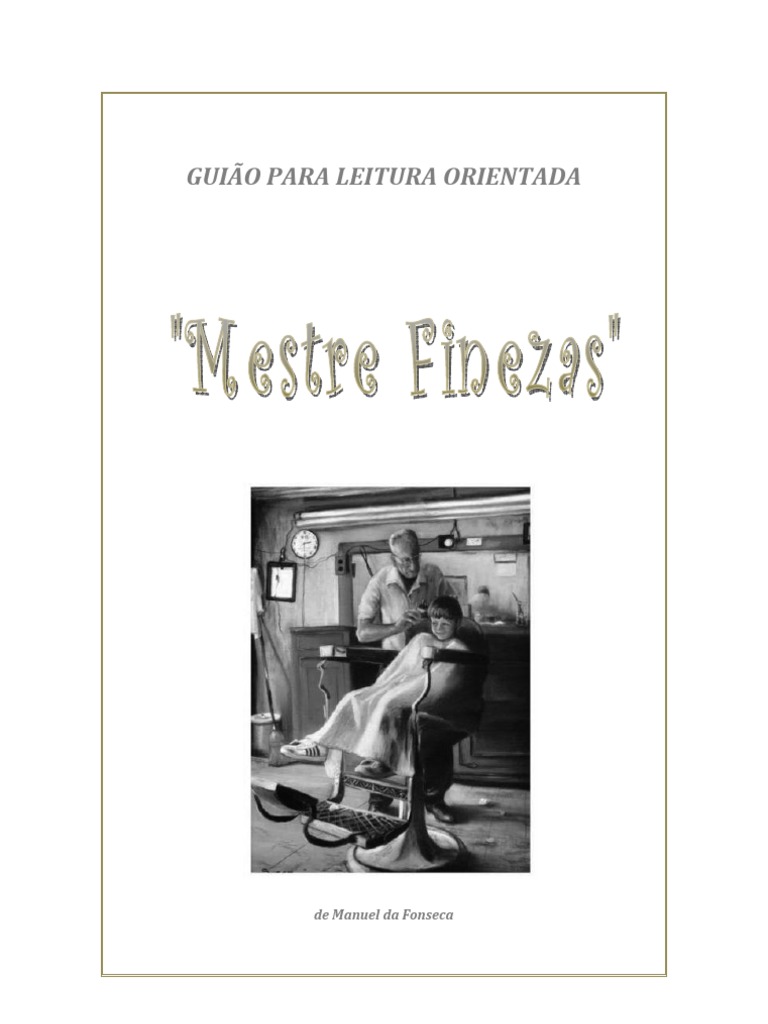 1 ‐ Uma onda de ternura por aquele velho amolece‐ me. 2 ‐ Agora entro, sento ‐ me de perna cruzada e puxo um cigarro 3 ‐ Nesse tempo tinha ‐ lhe medo. Medo e admiração. 4 ‐ Um dia, parti para os estudos. Voltei homem. 5 ‐ Mestre Finezas curvou a cabeça branca. 6 ‐ Mestre Finezas passa necessidades. 7 ‐ Mestre Finezas era o que mais se destacava. 8 ‐ Jantávamos à pressa e nessas noites a minha mãe penteava‐ me com cuidado. 9 ‐ Via ‐ lhe os braços compridos, arqueados como duas garras sobre a minha cabeça. 10 ‐ Vai falar ‐ me do abandono a que o votaram.