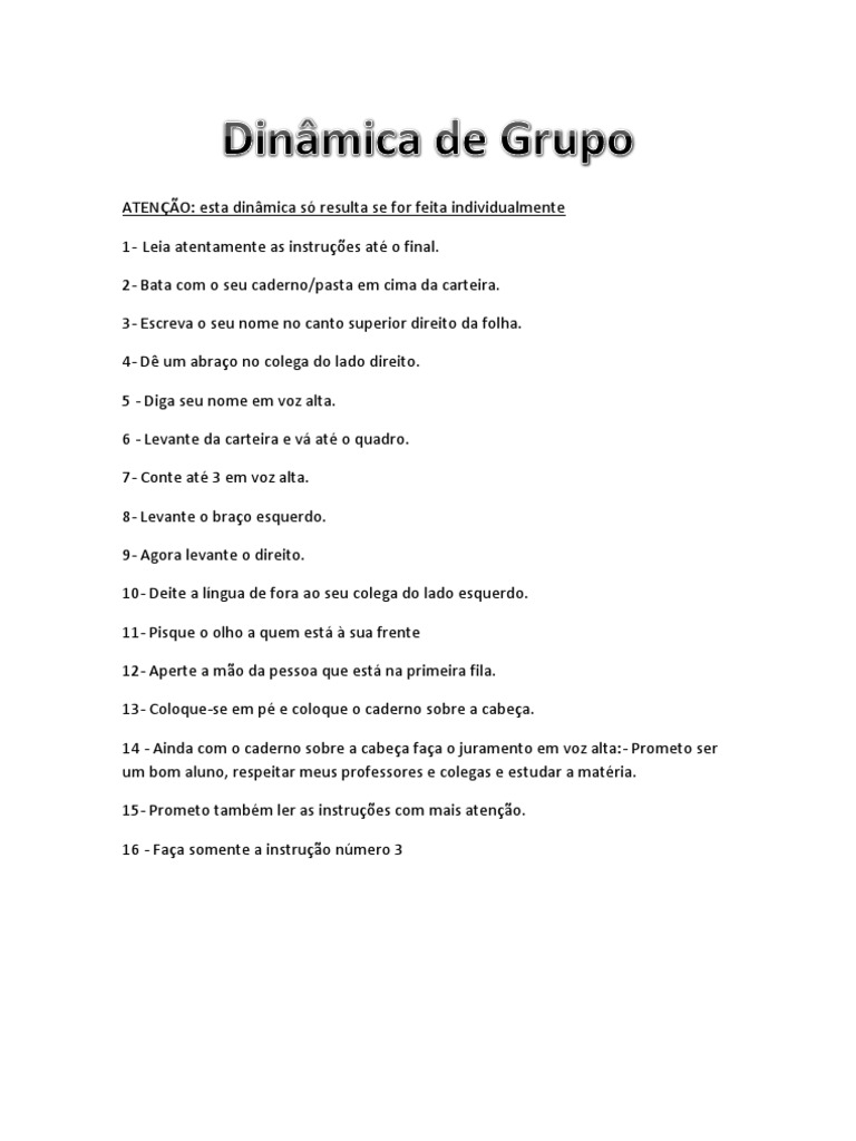 ATENÇÃO: esta dinâmica só resulta se for feita individualmente