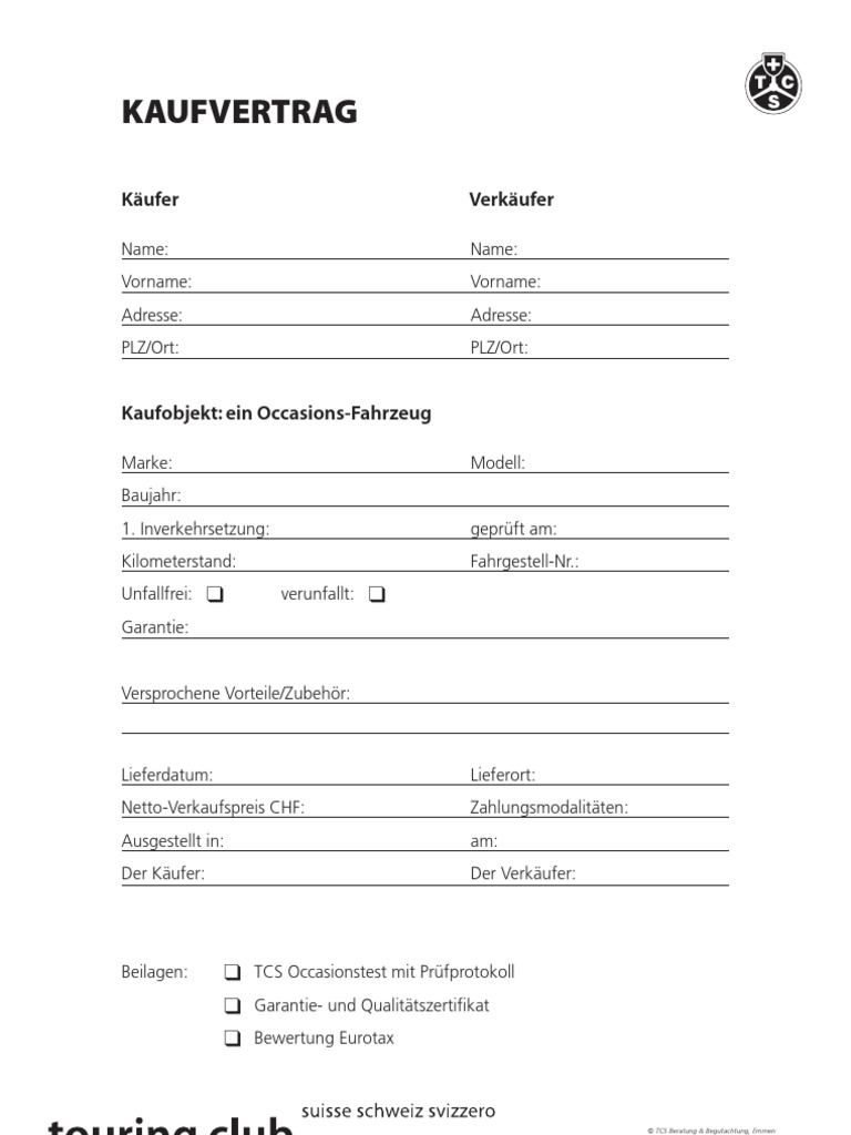 Muster Kaufvertrag Occasionhandel