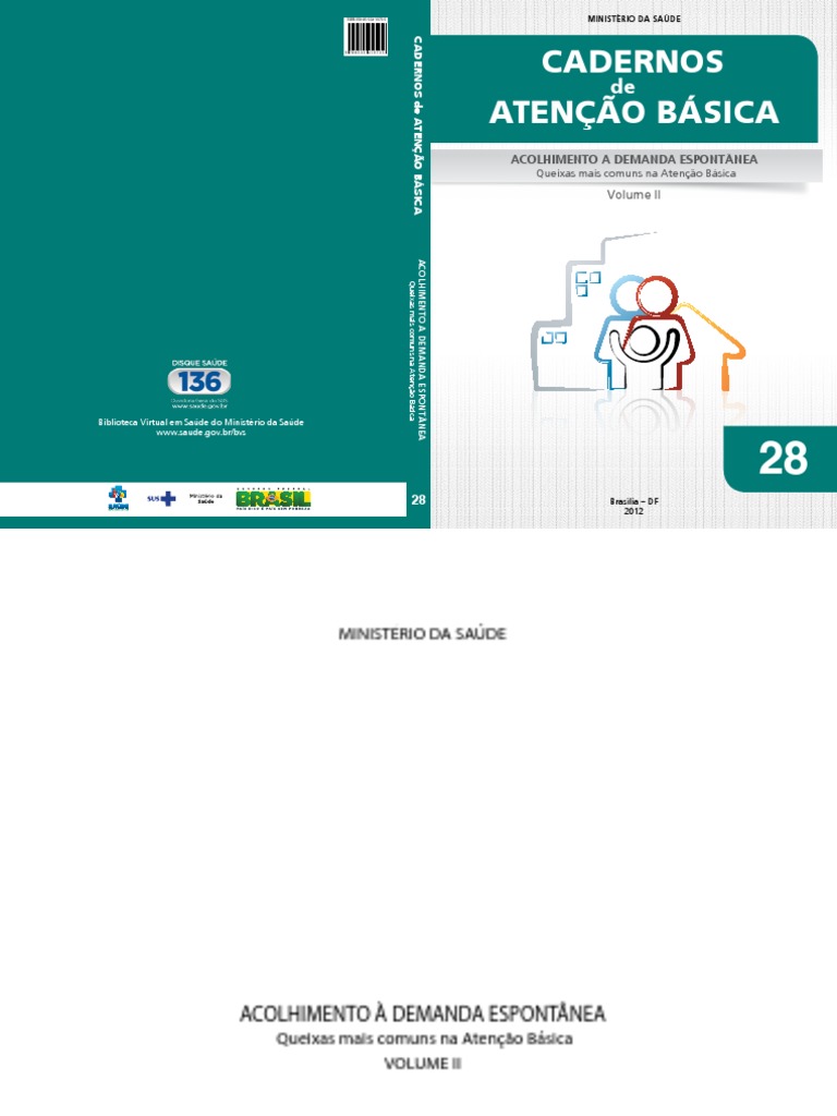 Brasil. Ministério da Saúde. Secretaria de Atenção à Saúde. Departamento de Atenção Básica. Acolhimento à demanda espontânea : queixas mais comuns na Atenção Básica / Ministério da Saúde, Secretaria de Atenção à Saúde, Departamento de Atenção Básica. – Brasília : Ministério da Saúde, 2012. 290 p. : il. – (Cadernos de Atenção Básica n. 28, Volume II)