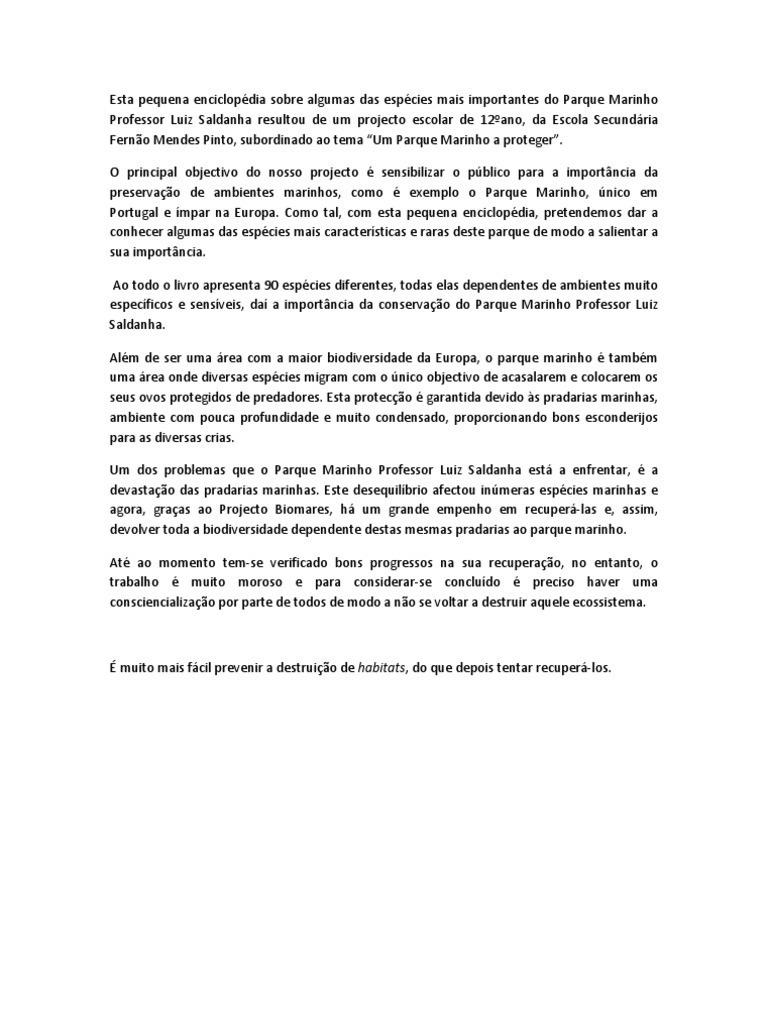 Esta pequena enciclopédia sobre algumas das espécies mais importantes do Parque Marinho