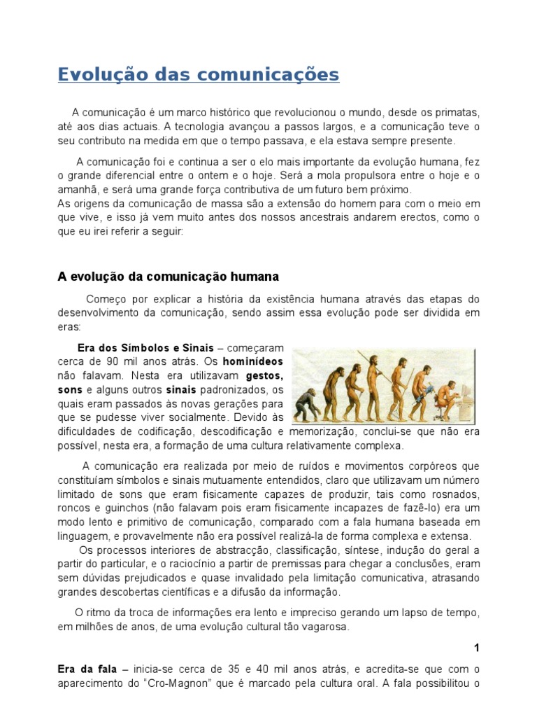 A comunicação foi e continua a ser o elo mais importante da evolução humana, fez