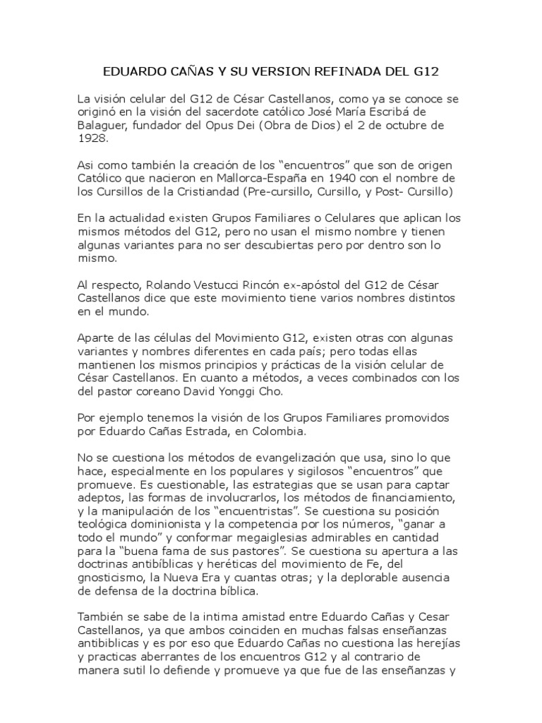 practicas de la visión herética del G12 de donde Eduardo Cañas