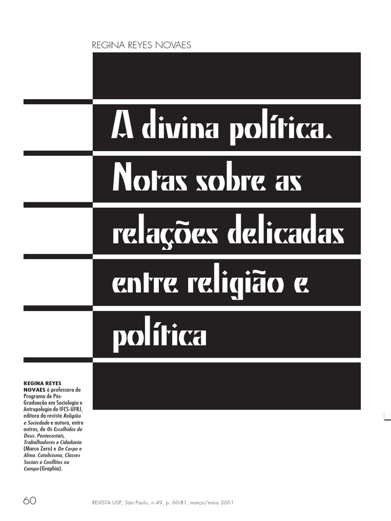 16 Frases retiradas do artigo F, Religio e Poltica, assinado por Benedita da Silva (Jornal Soma, no 10, janeiro de 2001). Atualmente Benedita da Silva vice-governadora do estado do Rio de Janeiro.