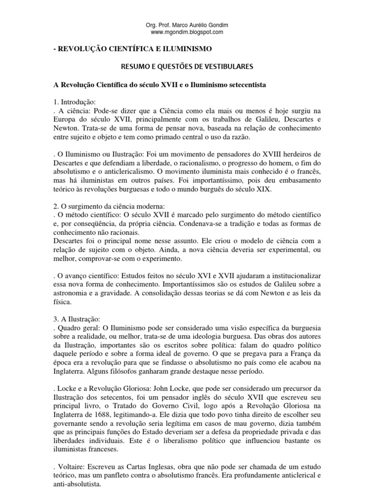 A Revolução Científica do século XVII e o Iluminismo setecentista