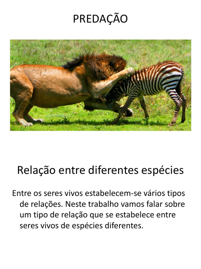 A Predao uma relao alimentar em que um ser vivo (o predador) mata outro (a presa) para se alimentar. A espcie predadora fica ameaada de extino se a presa excessivamente consumida ou se se torna inacessvel .