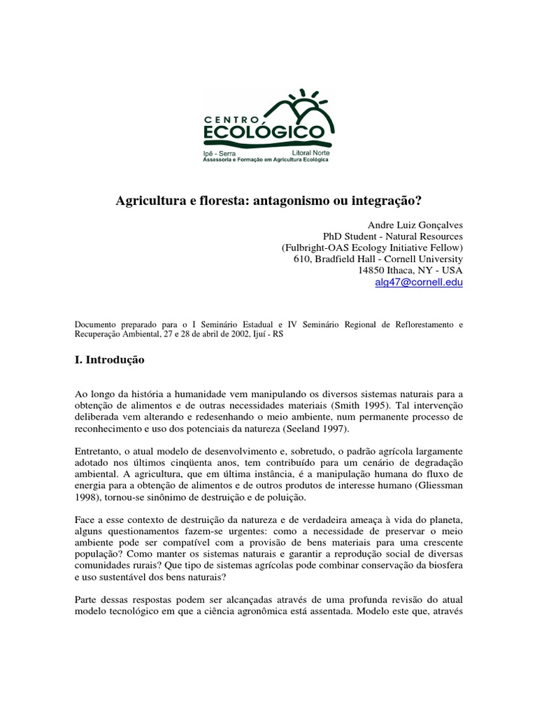 Agricultura e floresta: antagonismo ou integrao?