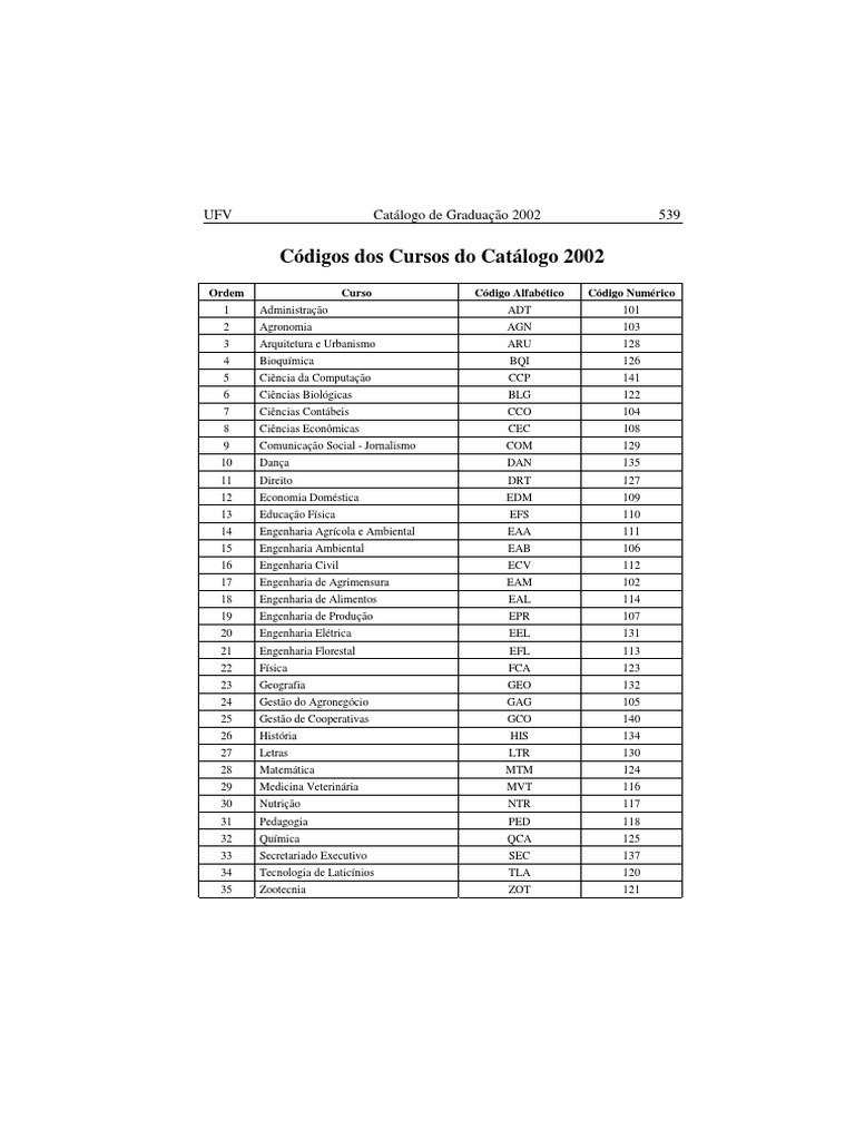 Ordem Curso Cdigo Alfabtico Cdigo Numrico