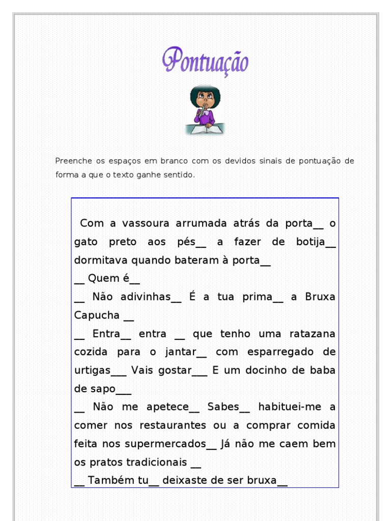Preenche os espaços em branco com os devidos sinais de pontuação de