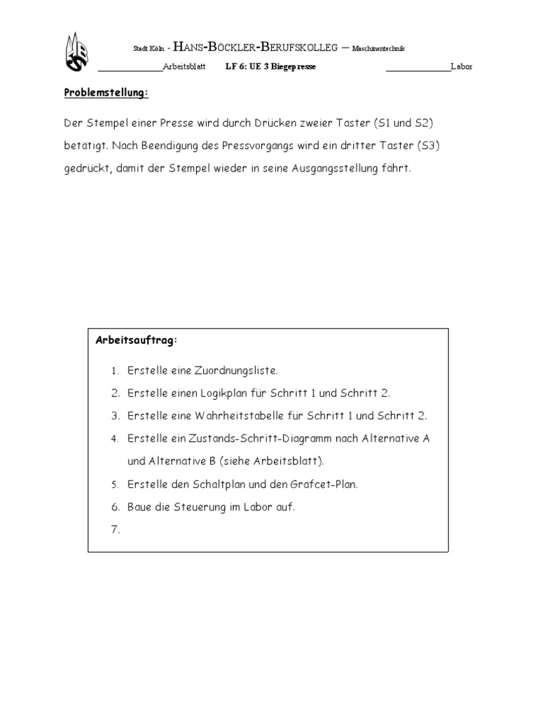 ____________Arbeitsblatt LF 6: UE 3 Biegepresse ____________Labor