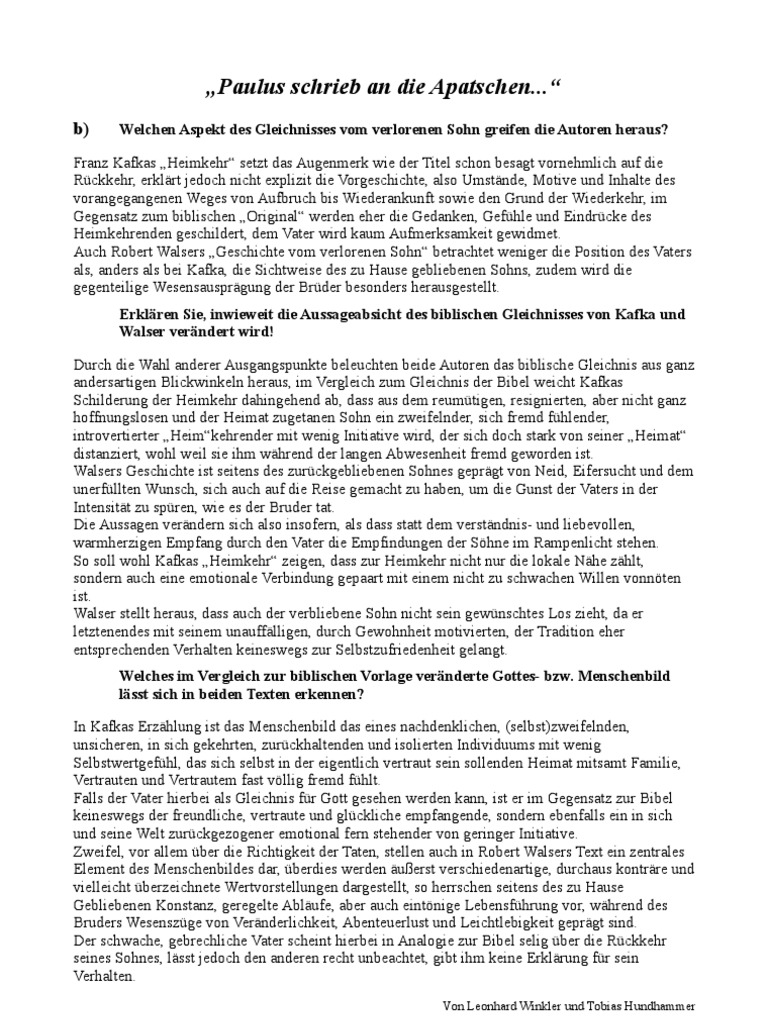 b) Welchen Aspekt des Gleichnisses vom verlorenen Sohn greifen die Autoren heraus?