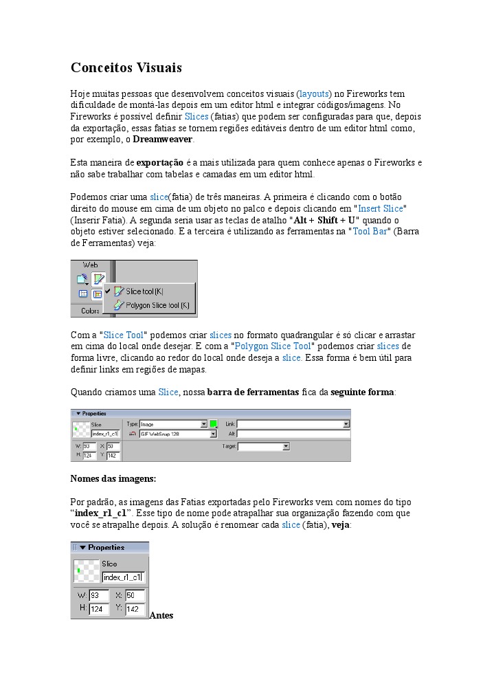 Open" e abra o arquivo .html que foi gerado pelo Fireworks. Todas as Slices (Fatias) do
