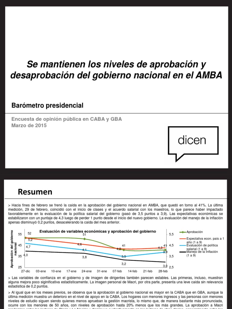> Hacia fines de febrero se fren la cada en la aprobacin del gobierno nacional en AMBA, que qued en torno al 41%. La ltima