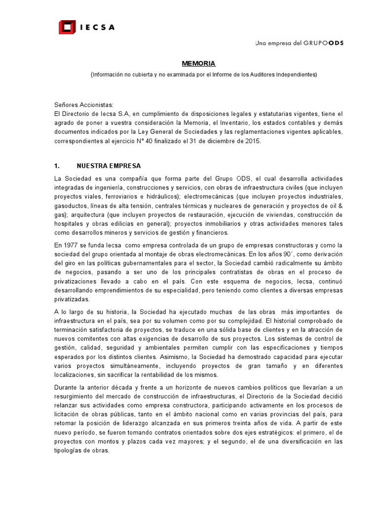 El Directorio de Iecsa S.A, en cumplimiento de disposiciones legales y estatutarias vigentes, tiene el