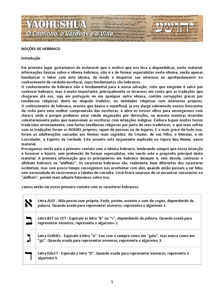 informaes bsicas sobre o idioma hebraico, no a de formar especialistas neste idioma, seno apenas
