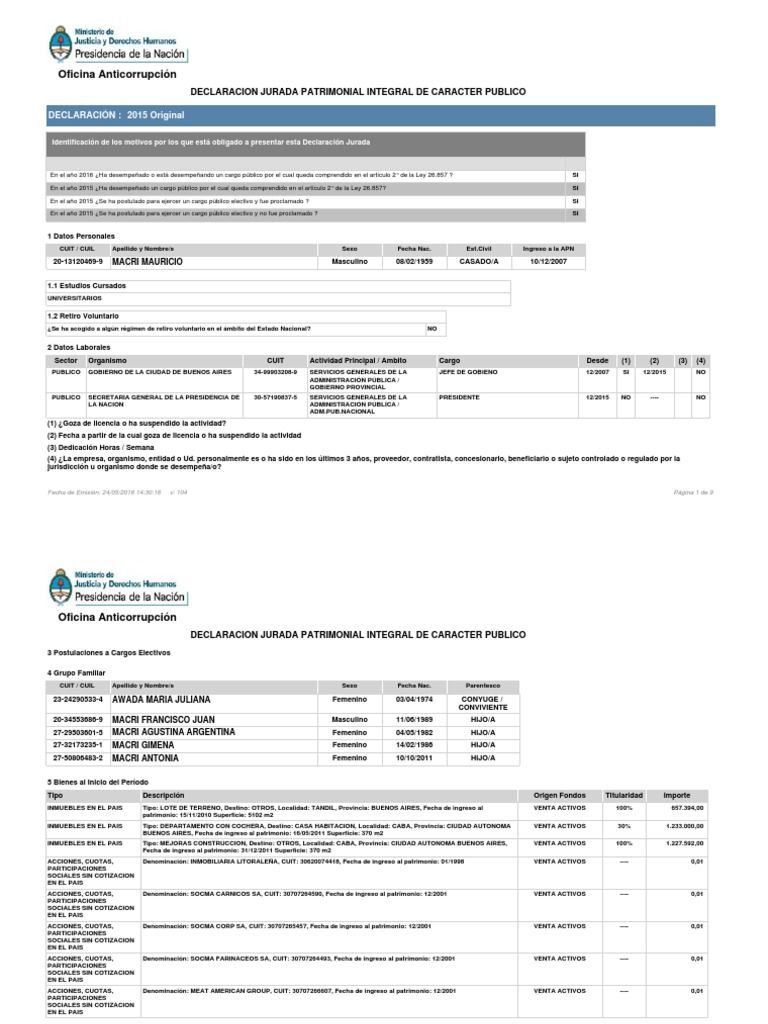 En el ao 2015 Ha desempeado un cargo pblico por el cual queda comprendido en el artculo 2 de la Ley 26.857?