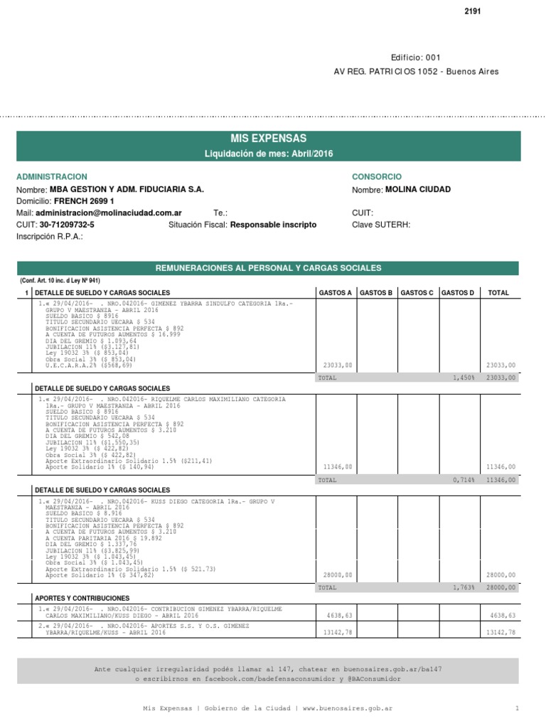 2. MBA GESTION Y ADM. FIDUCIARIA- FRENCH 2699 P1- CUIT 30-71209732-527/04/2016- A000200000061- HONORARIOS DE ADMINISTRACION - ABRIL 2016