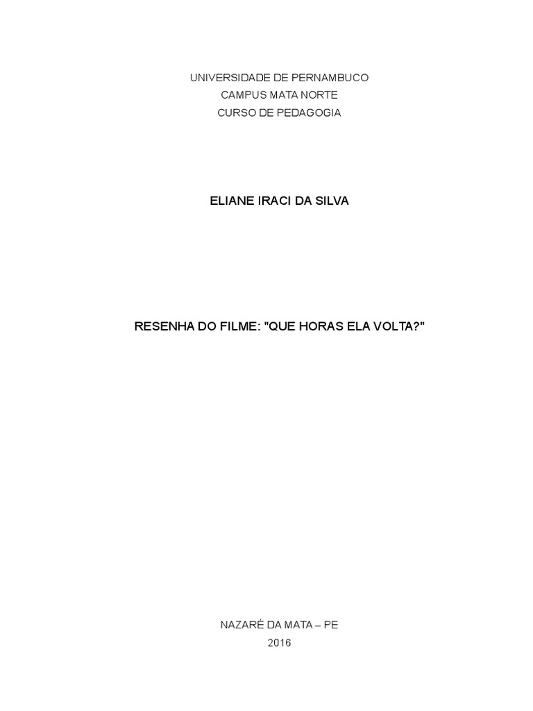Ttulo: Que Horas Ela Volta? Direo e Roteiro: Anna Muylaert.