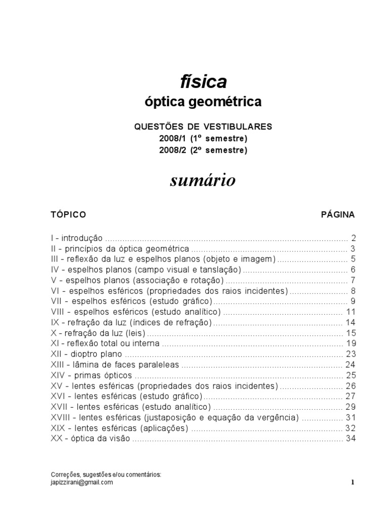XVIII - lentes esféricas (justaposição e equação da vergência) ................. 31