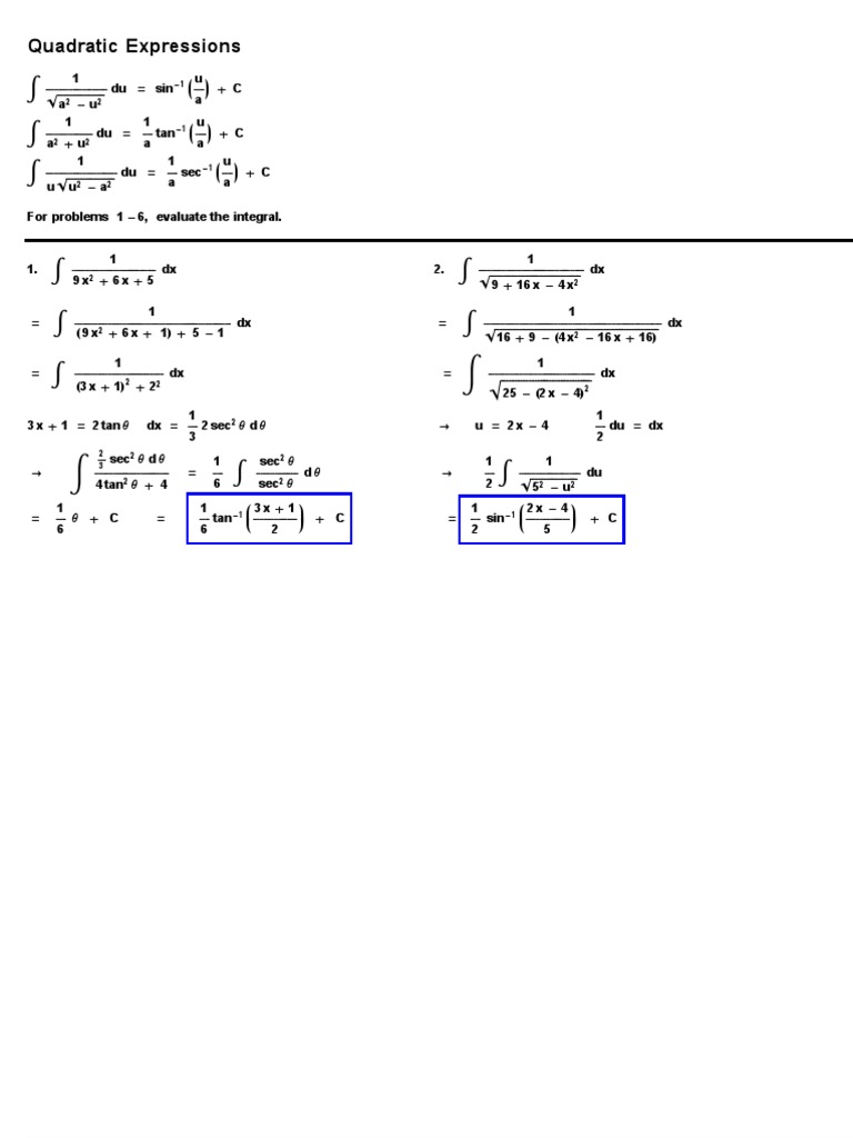 ÄÄÄÄÄ tan-1 jj ÄÄÄÄÄÄÄÄÄÄÄÄÄÄÄÄÄÄÄÄÄÄÄÄÄ zz + C ÄÄÄÄÄ sin-1 jj ÄÄÄÄÄÄÄÄÄÄÄÄÄÄÄÄÄÄÄÄÄÄÄÄÄ zz