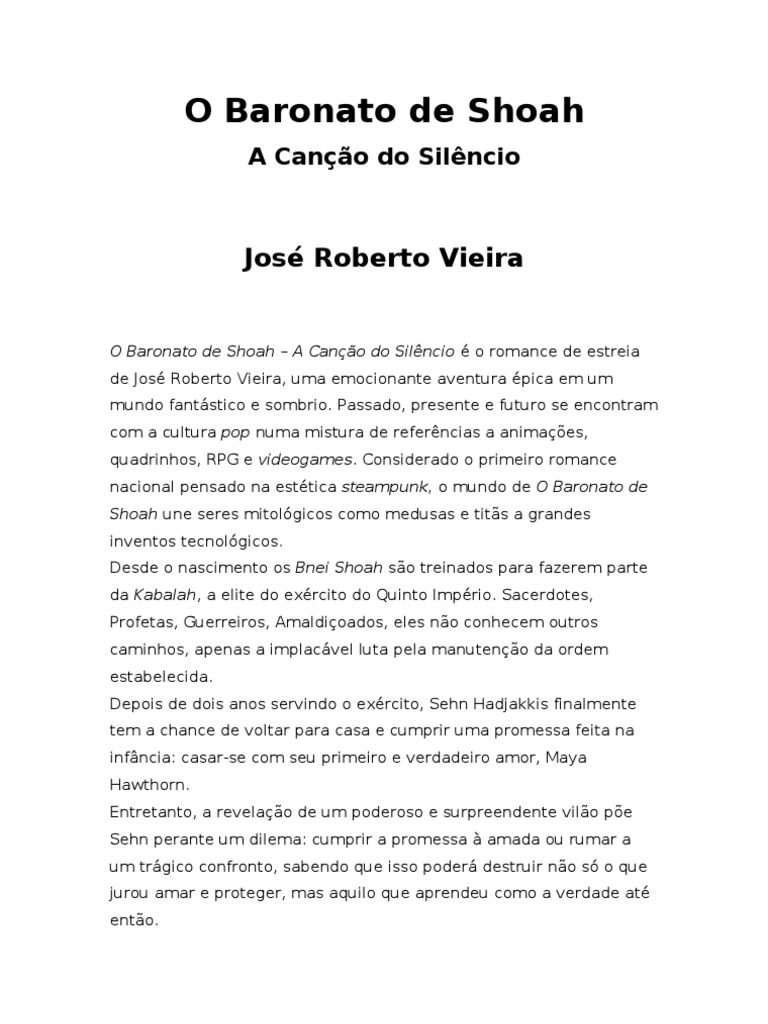 O Baronato de Shoah – A Canção do Silêncio é o romance de estreia