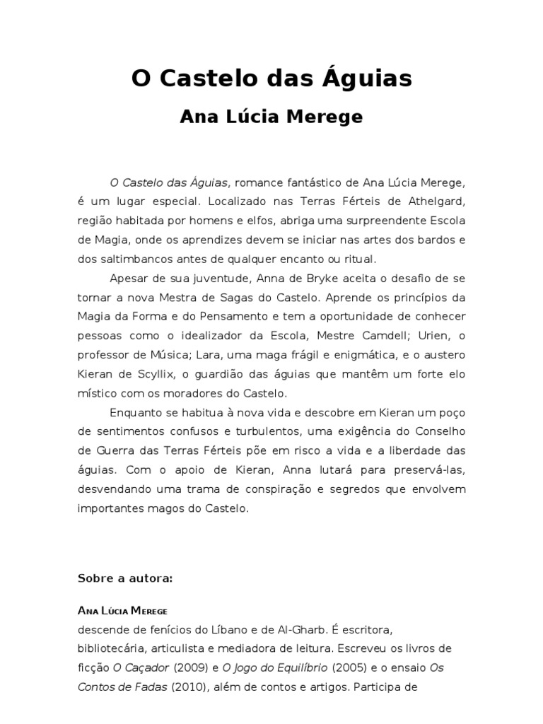 O Castelo das Águias, romance fantástico de Ana Lúcia Merege,