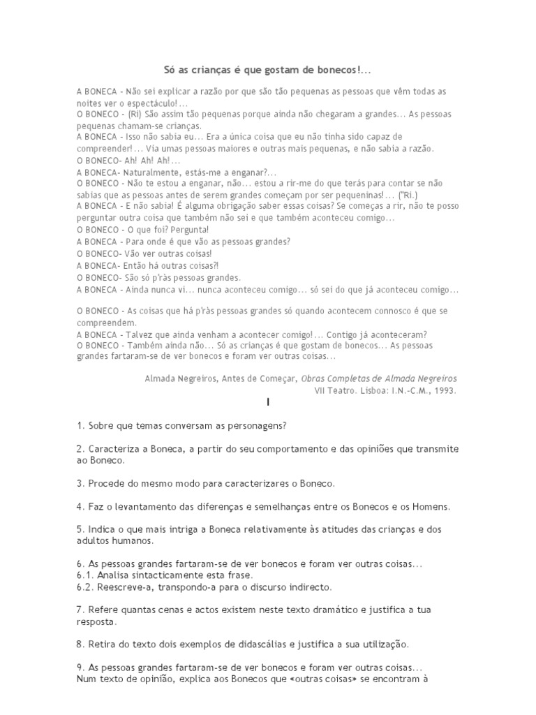 O BONECO - Também ainda não... Só as crianças é que gostam de bonecos... As pessoas