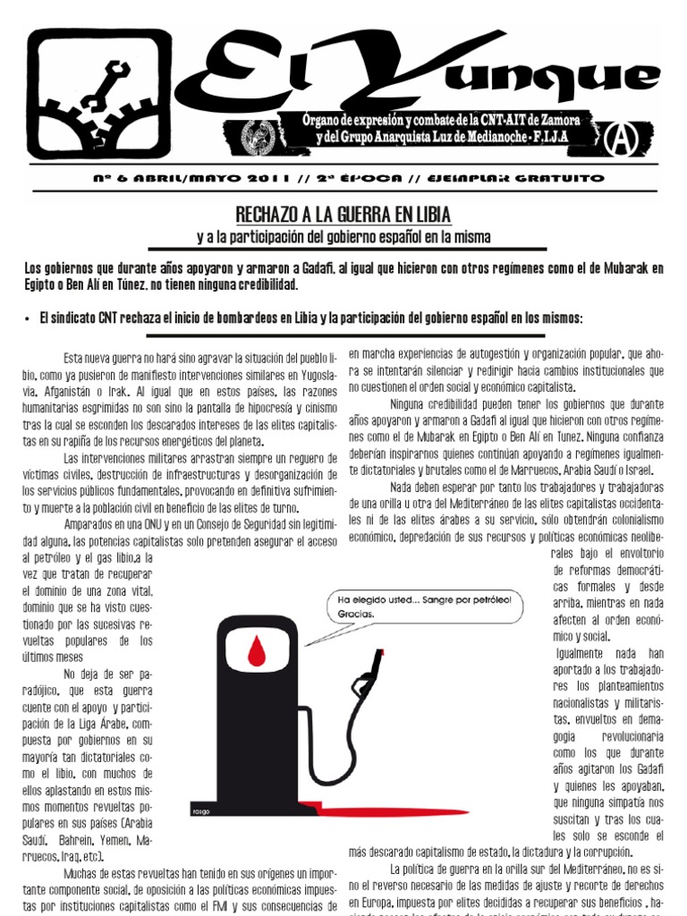 • El sindicato CNT rechaza el inicio de bombardeos en Libia y la participación del gobierno español en los mismos: