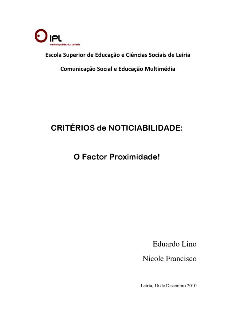 http://utad0708epm.wikispaces.com/Crit%C3%rios+de+Noticiabilidade, consultado em 20-11-2010(11h)