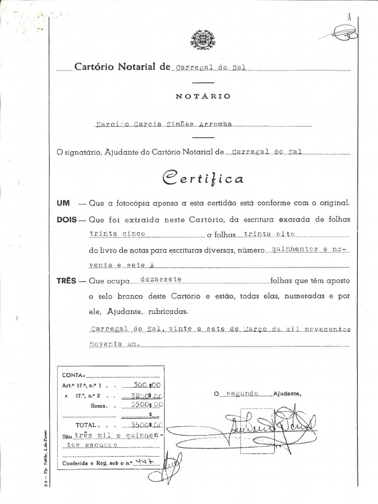 Osignatario, Ajudante do Cartério Notarial de.... canregal..de..Sal..
