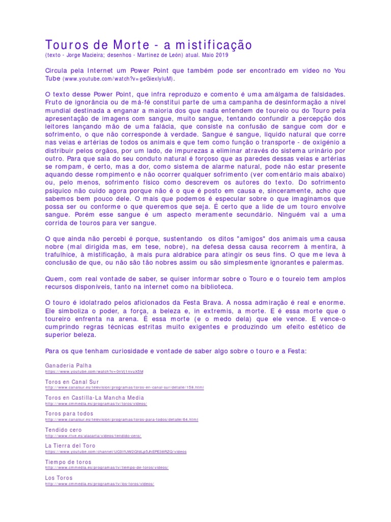 possa ser ou conforme o que queremos que seja. É certo que a lide de um touro envolve