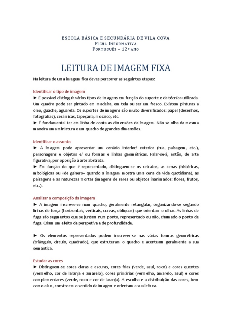 Portugus 12. ano Ficha informativa Leitura de Imagem fixa