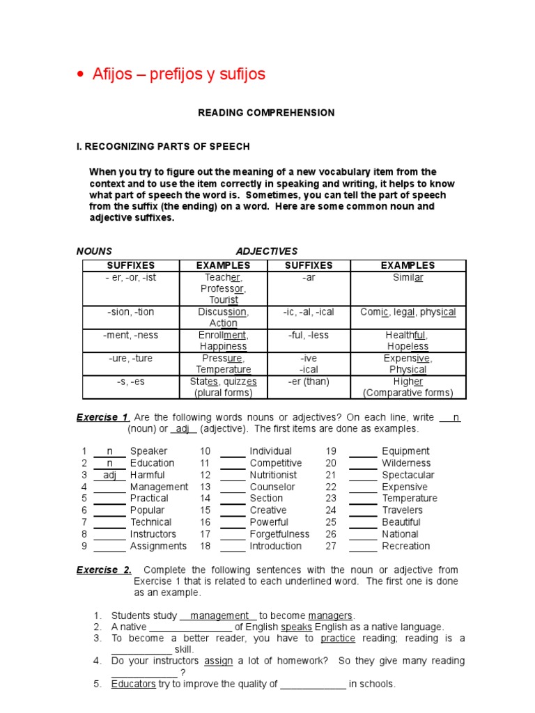 suffixes that will help you recognize words by their parts of speech.