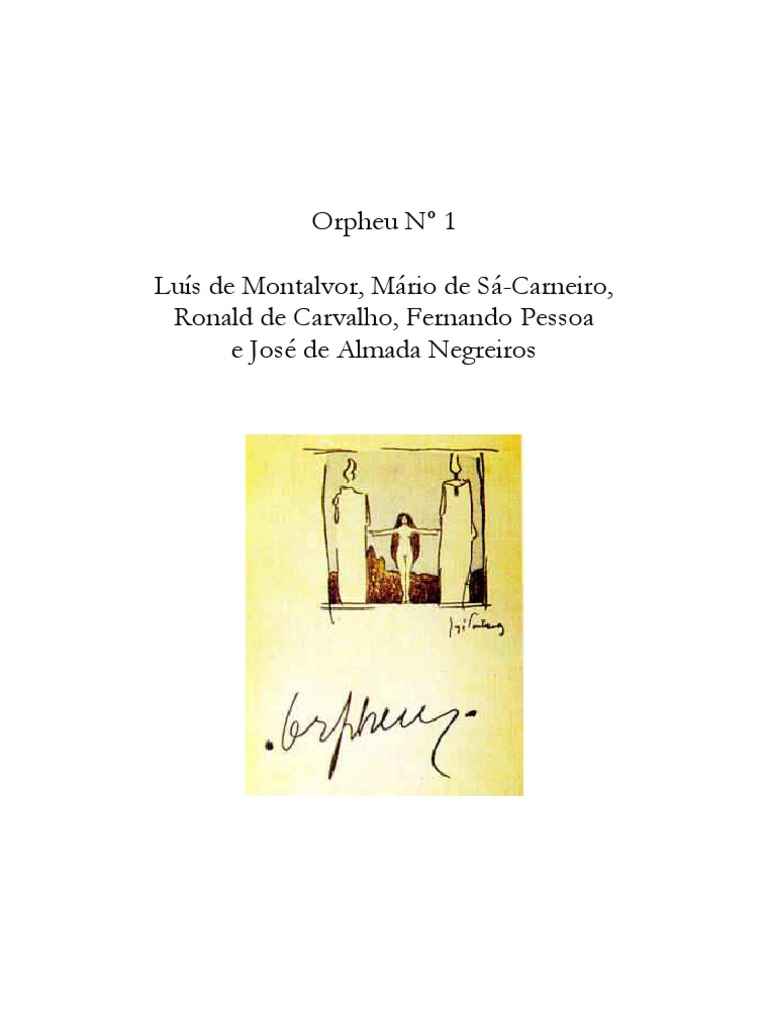 O que propriamente revista em sua essncia de vida e quotidiano, deixa-o de ser ORPHEU, para melhor se engalanar do seu ttulo e propor-se. E propondo-se, vincula o direito de em primeiro lugar se desassemelhar de outros meios, maneiras de formas de realizar arte, tendo por notvel nosso volume de Beleza no ser incaracterstico ou fragmentado, como literrias que so essas duas formas de fazer revista ou jornal. Puras e raras suas intenes como seu destino de Beleza o do: - Exlio! Bem propriamente, ORPHEU, um exlio de temperamentos de arte que a querem como a um segredo ou tormento... Nossa pretenso formar, em grupo ou ideia, um numero escolhido de revelaes em pensamento ou arte, que sobre este principio aristocrtico tenham em ORPHEU o seu ideal esotrico e bem nosso de nos sentirmos e conhecermo-nos. A fotografia de gerao, raa ou meio, com o seu mundo imediato de exibio a que frequentemente se chama literatura e sumo do que para a se intitula revista, com a variedade a inferiorizar pela igualdade de assumptos (artigo, seco ou momentos) qualquer tentativa de arte - deixa de existir no texto preocupado de ORPHEU. Isto explica nossa ansiedade e nossa essncia! Esta linha de que se quer acercar em Beleza, ORPHEU, necessita de vida e palpitao, e no justo que se esterilize individual e isoladamente cada um que a sonhar nestas cousas de pensamento, lhes der orgulho, temperamento e esplendor - mas pelo contrario se unam em seleco e a dem aos outros que, da mesma espcie, como raros e interiores que so, esperam ansiosos e sonham nalguma cousa que lhes falta, - do que resulta uma procura esttica de permutas: os que nos procuram e os que ns esperamos... Bem representativos da sua estrutura, os que a formam em ORPHEU, concorrero a dentro do mesmo nvel de competncias para o mesmo ritmo, em elevao, unidade e discrio, de onde depender a harmonia esttica que ser o tipo da sua especialidade. E assim, esperanados seremos em ir a direito de alguns desejos de bom gosto e refinados propsitos em arte que isoladamente vivem para a, certos que assinalamos como os primeiros que somos em nosso meio, alguma cousa de louvvel e tentamos por esta