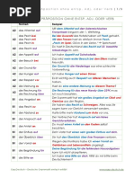 bis Einsatz: lokale und temporale Angaben, Zahlenangaben, auch vor Adverbien Der Zug fhrt nur bis Aachen. Die Vorlesung dauert bis 17:00 Uhr. Der fnfjhrige Lukas kann schon bis 100 zhlen. Tschss, bis gleich (- bald, - morgen Abend, - nachher, - Samstag, - spter, ...) durch Einsatz: lokale Angaben, und Passivstze Zur S-Bahnstation gehen Sie am besten durch den Park dort. Unsere Katze kommt nicht durch die Tr, durch das Fenster ins Haus. Durch stndiges Rauchen wird das Krebsrisiko stark erhht. Durch Sprechen in Alltagssituationen wird der allgemeine Wortschatz gefestigt. fr Einsatz: Zeitraum, Preisangaben, Vergleiche, fr wen ist etwas? Herr Pauli ist fr drei Tage in die USA geflogen. Ich habe etwas fr dich mitgebracht. Das Haus wird fr 250.000 Euro zum Kauf angeboten. gegen Einsatz: Bewegung mit Berhrung, ungefhre Zeit- und Zahlenangaben Gestern ist meine Frau mit dem Auto gegen einen Baum gefahren. Frau Klimbim wird gegen 17:00 Uhr eine Pressekonferenz geben. Das Auto msste gegen 3.000 Euro zu verkaufen sein. ohne Einsatz: Gegenteil von "mit" Ohne einen Cent in der Tasche fuhr er mit dem Fahrrad nach Italien. Herr Lieberknecht kommt heute Abend ohne seine Frau zum Geschftsessen. Ohne Uhr fhle ich mich nicht wohl. um Einsatz: lokale und temporale Angaben, Zahlenangaben Die Kirche sehen Sie bereits, wenn Sie um diese Ecke dort gehen. Fahren Sie um den Stau herum, dann sparen Sie viel Zeit. Der Unterricht beginnt morgen ausnahmsweise schon um 8:30 Uhr. Die Preise werden in diesem Jahr wahrscheinlich um 1,75 % steigen. entlang* Parallelitt * das Nomen steht vor der Prposition (inverse Struktur) Gestern sind wir stundenlang den Rhein entlang gegangen. Gehen Sie immer diesen Weg entlang. Nach 5 km erreichen Sie schon das nchste Dorf. Fahren Sie den Knigsweg entlang bisz zur zweiten Kreuzung, biegen Sie dann rechts ab.