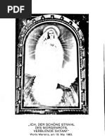zen. In Gegenwart der im Zeichen dargestellten auserwhlten Frau fabelte der Tor: Jener Sohn, den dieses Weib gebren wird, ist von Natur aus geringer als ich. Ich will Ihn verschlingen und vernichten. Meinen Anhang will ich gegen Ihn fhren und wider Seine Gedanken und Gesetze meine Lehren ausstreuen. Einen ewigen Krieg will ich wider Ihn fhren und in ewiger Feindschaft gegen Ihn verharren! Maria aber steht einzig da. Obwohl Adamstochter, berragt sie weit alle Engel an Gnaden, Gaben und Verdiensten.