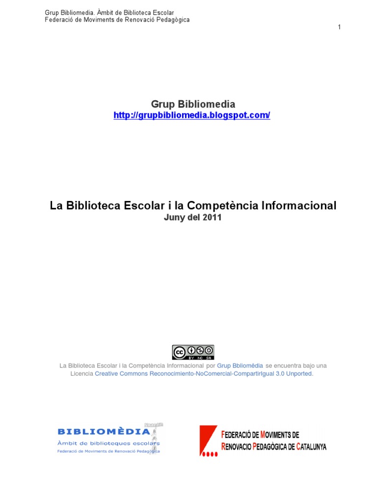 La Biblioteca Escolar i la Competncia Informacional por Grup Bbliomdia se encuentra bajo una Licencia Creative Commons Reconocimiento-NoComercial-CompartirIgual 3.0 Unported.