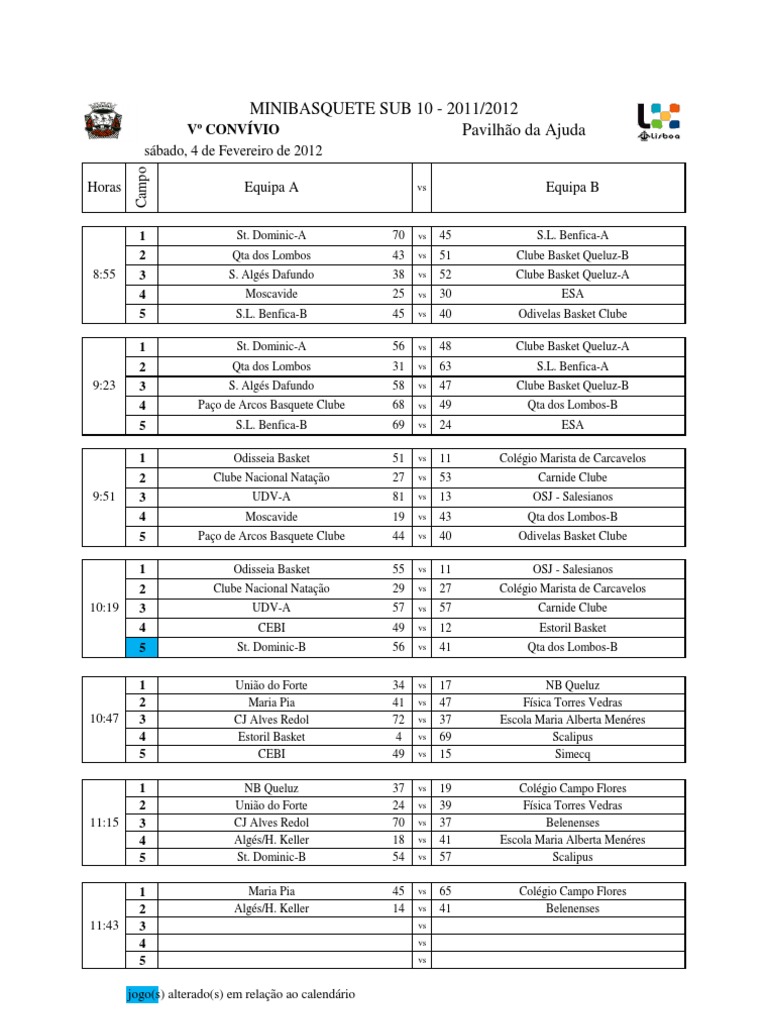 St. Dominic-A Qta dos Lombos S. Algs Dafundo Moscavide S.L. Benfica-B St. Dominic-A Qta dos Lombos S. Algs Dafundo Pao de Arcos Basquete Clube S.L. Benfica-B Odisseia Basket Clube Nacional Natao UDV-A Moscavide Pao de Arcos Basquete Clube Odisseia Basket Clube Nacional Natao UDV-A CEBI St. Dominic-B Unio do Forte Maria Pia CJ Alves Redol Estoril Basket CEBI NB Queluz Unio do Forte CJ Alves Redol Algs/H. Keller St. Dominic-B Maria Pia Algs/H. Keller
