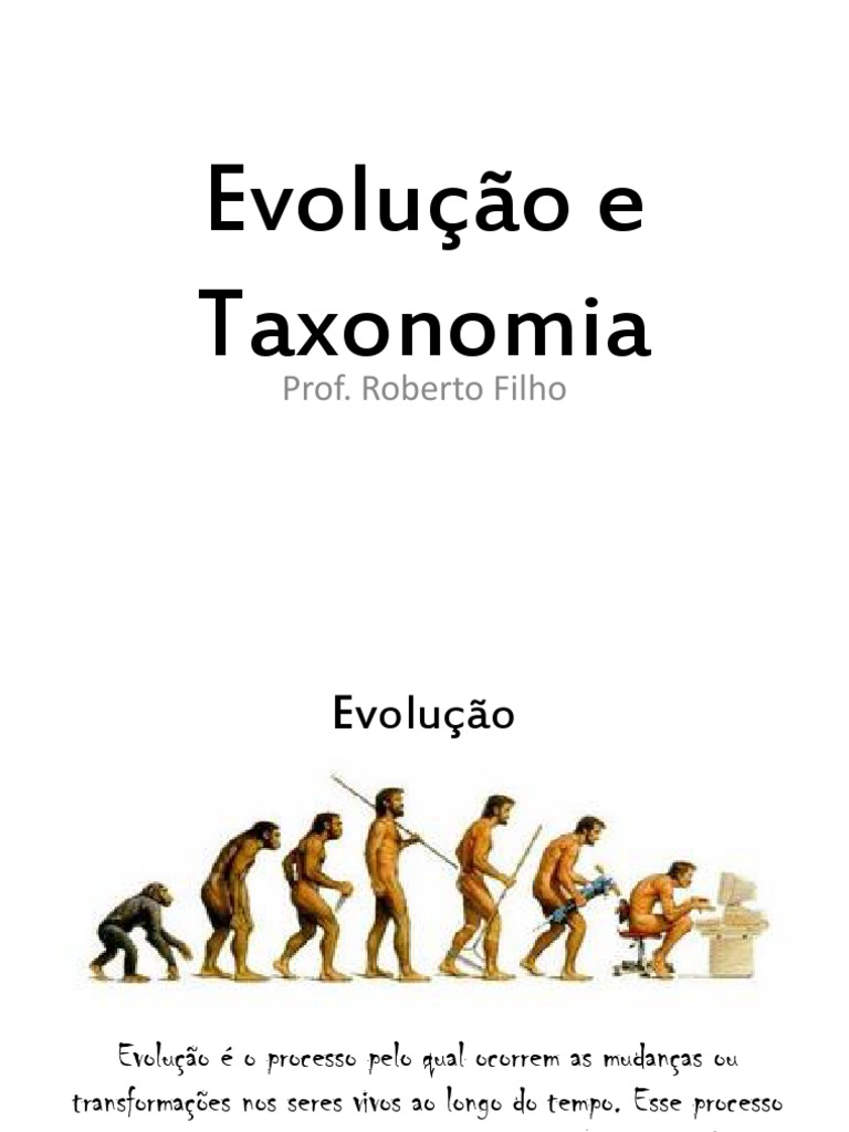 Evoluo o processo pelo qual ocorrem as mudanas ou transformaes nos seres vivos ao longo do tempo. Esse processo vem acontecendo desde que a vida surgiu na Terra e explica a diversidade e a extino das espcies...
