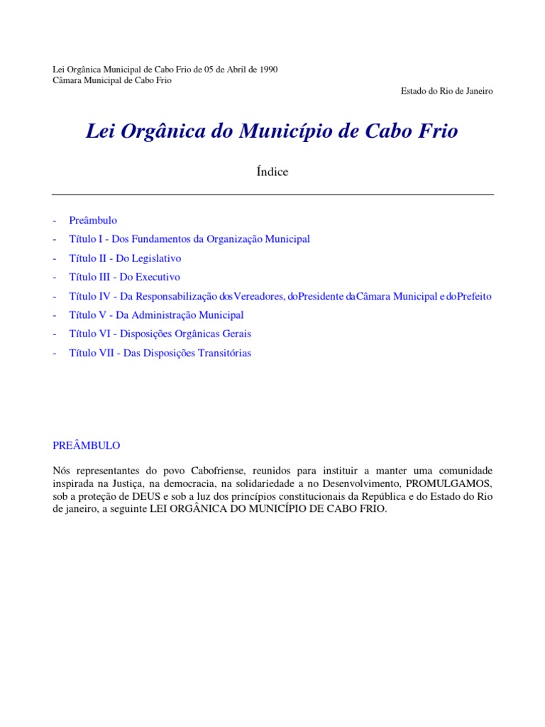 Lei Orgânica do Município de Cabo Frio