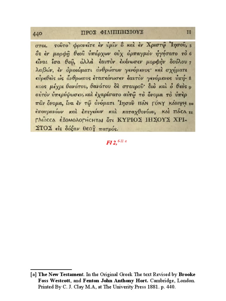 [a] The New Testament. In the Original Greek The text Revised by Brooke Foss Westcott, and Fenton John Anthony Hort. Cambridge, London. Printed By C. J. Clay M.A, at The Univerity Press 1881. p. 440.