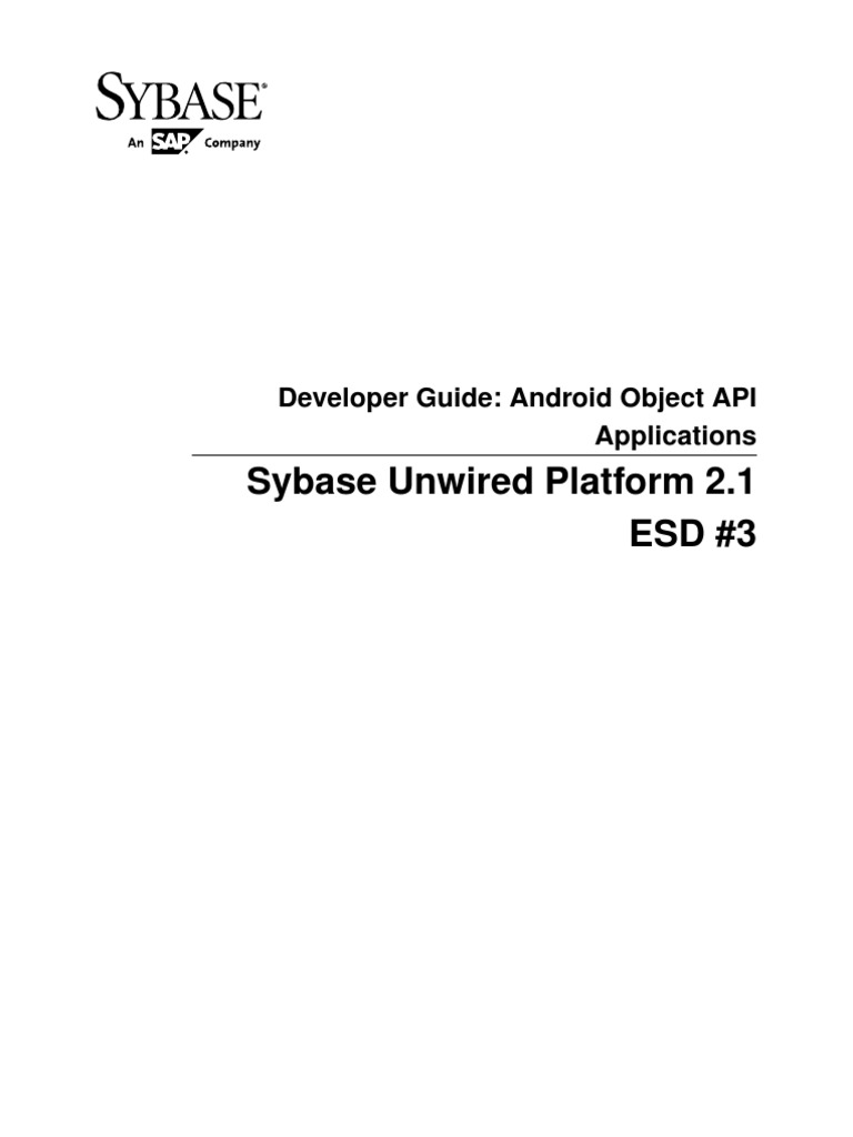 Sybase Unwired WorkSpace Mobile Business Object Development Troubleshooting for Sybase Unwired Platform. A complete Client Object API reference is available in the Unwired Platform installation directory <UnwiredPlatform_InstallDir>\MobileSDK213\ObjectAPI \apidoc\android. Fundamentals contains high-level mobile computing concepts, and a description of how Sybase Unwired Platform implements the concepts in your enterprise.