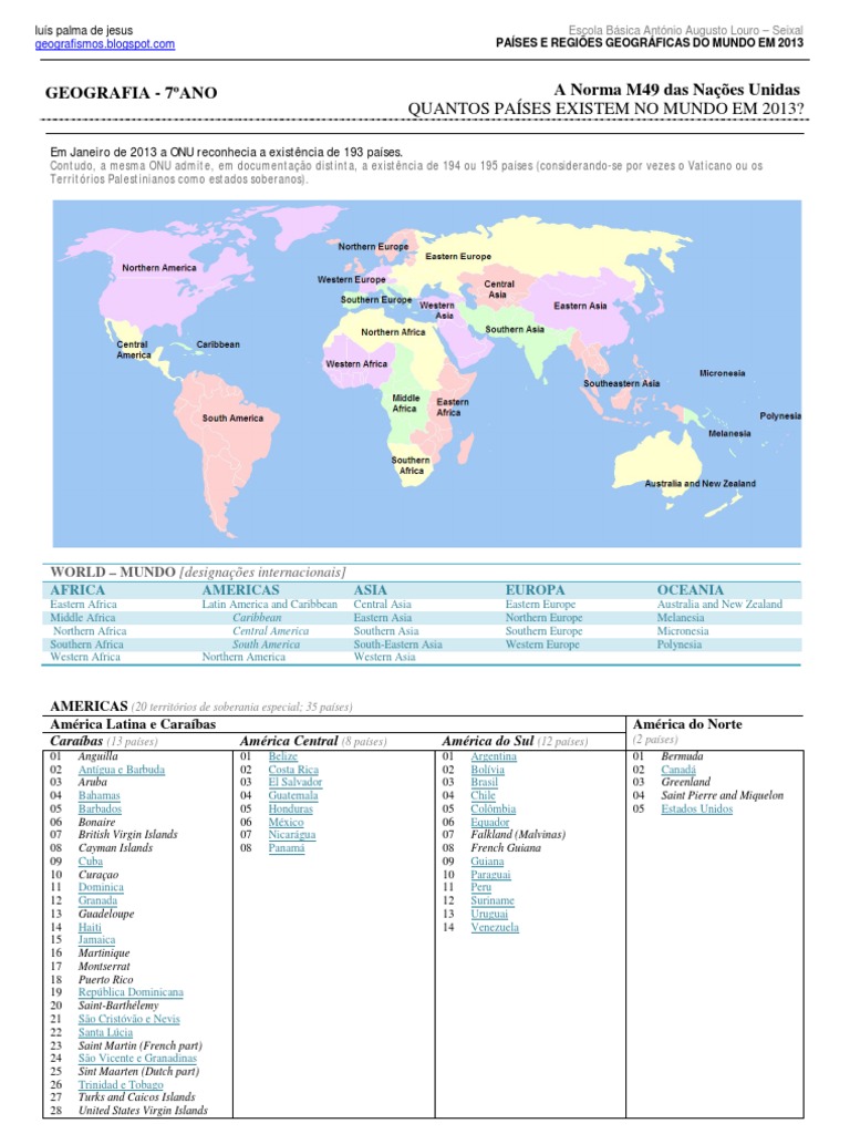 A Norma M49 das Naes Unidas QUANTOS PASES EXISTEM NO MUNDO EM 2013?