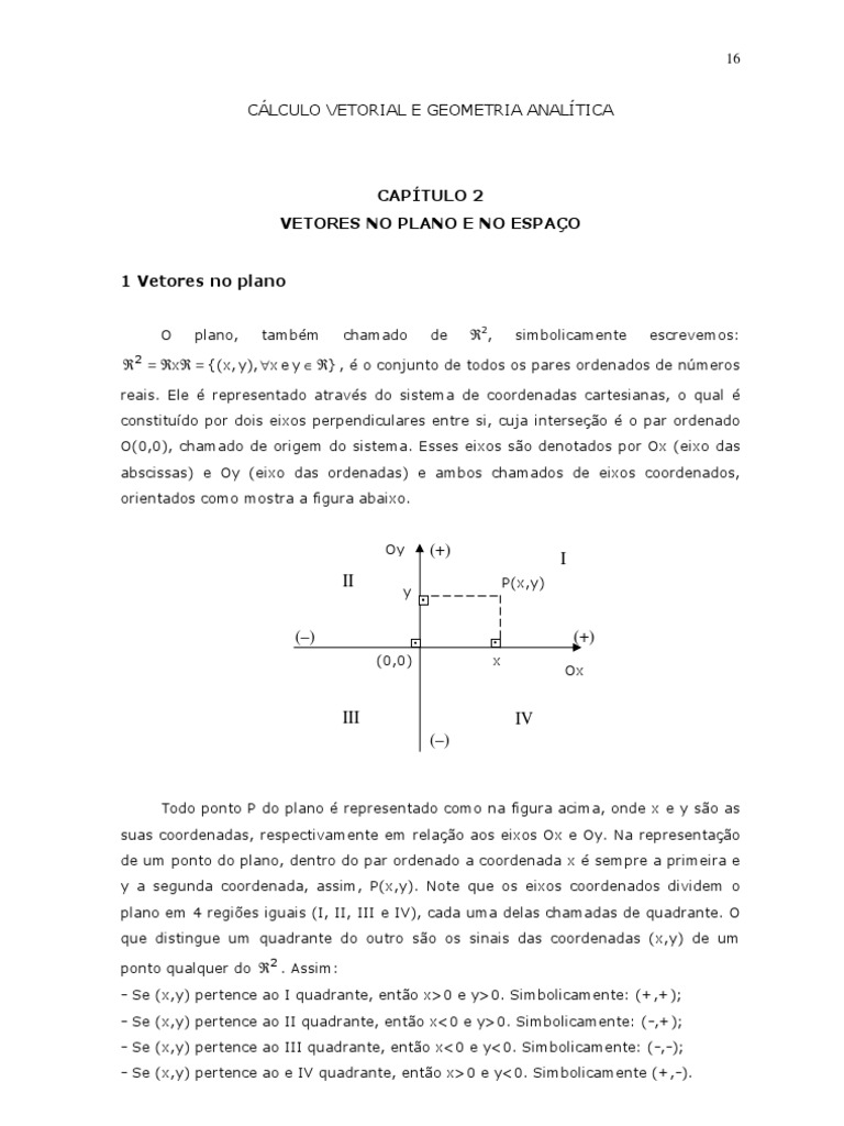 algum ponto P(x,y), do mesmo plano. Assim podemos identificar um vetor com um