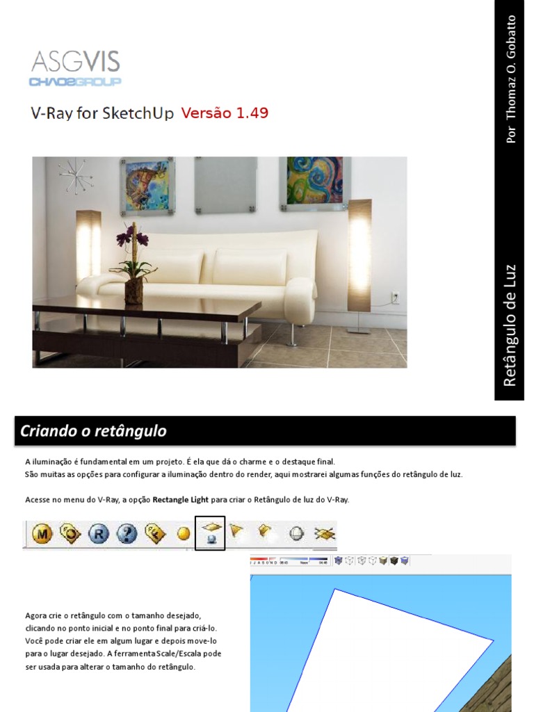 A iluminao fundamental em um projeto. ela que d o charme e o destaque final. So muitas as opes para configurar a iluminao dentro do render, aqui mostrarei algumas funes do retngulo de luz. Acesse no menu do V-Ray, a opo Rectangle Light para criar o Retngulo de luz do V-Ray.