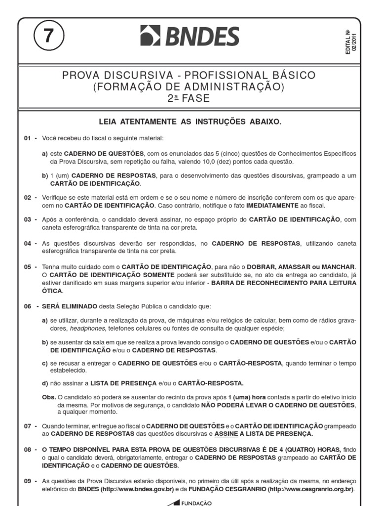 09 - As questões da Prova Discursiva estarão disponíveis, eletrônico do BNDES (http://www.bndes.gov.br) e da
