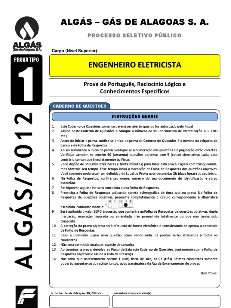 Prova tipo 1 26 AGO 2012 ALGS - 2012