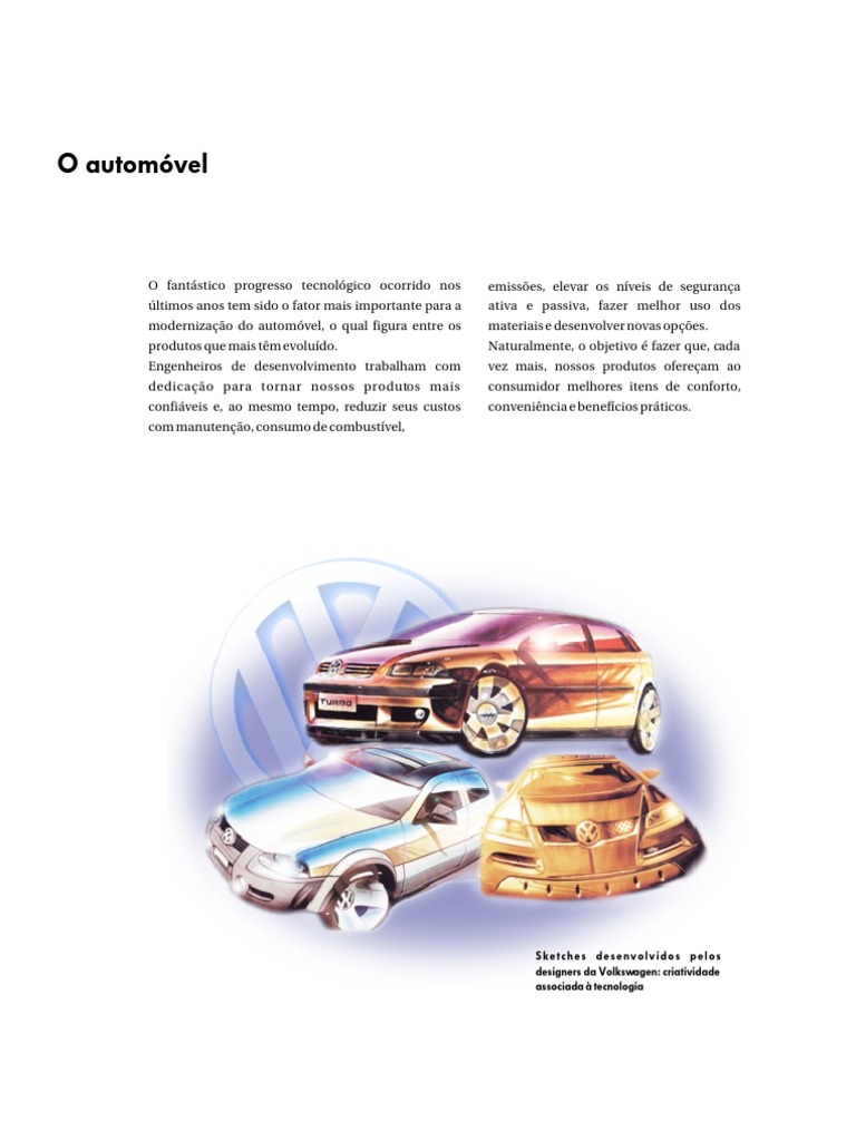 emisses, elevar os nveis de segurana ativa e passiva, fazer melhor uso dos materiais e desenvolver novas opes. Naturalmente, o objetivo fazer que, cada vez mais, nossos produtos ofeream ao consumidor melhores itens de conforto, convenincia e benefcios prticos.